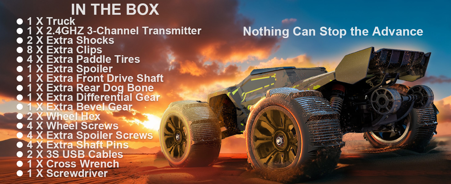 - Driving Quality: The tire Pre-mounted sponge inserted and high-performance absorbers greatly reduce the shaking of the truck when driving at high speed. The new design adjustable shocks, keep you confidently in control.