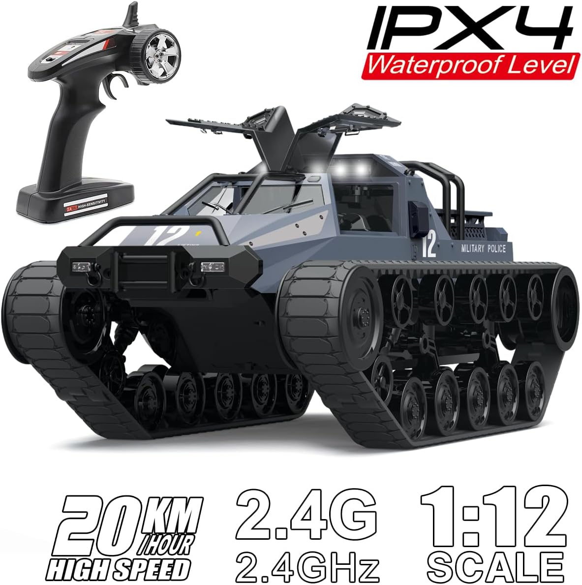 Mostop RC Tank, 1/12 Large Scale Off-road Remote Control Truck Crawler, 360°Rotation Drifting High Speed Truck RC Army Tank for Kids Adults
